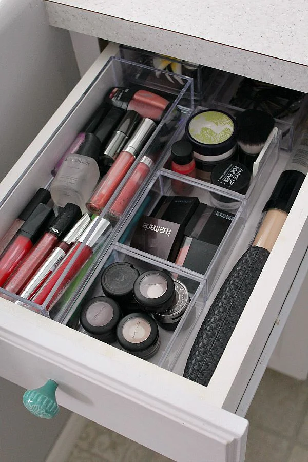 Why organise the drawer that hold your makeup and bathroom supplies? The biggest reason is that it will save you so much time in the morning getting ready! When you know where everything can be found, and exactly where to put it back, you'll be cutting precious minutes off your morning routine that might otherwise be spent rummaging through bottles, jars, tubes and brushes.